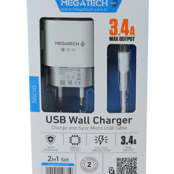 Megatech CC-03 3.4A Micro Usb Kablo+ Ev Şarj Adaptörü Hızlı Şarj