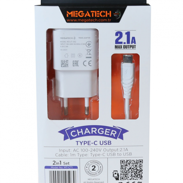 Megatech MT-Ct1 2.1a 2ın1 Typc-e Ev Şarj+Type-c Kablo