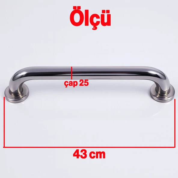 Banyo Tutunma Barı 43 cm Paslanmaz Çelik Vidalı Duvar Tipi Destek Barı Engelli Güvenlik Tutacağı