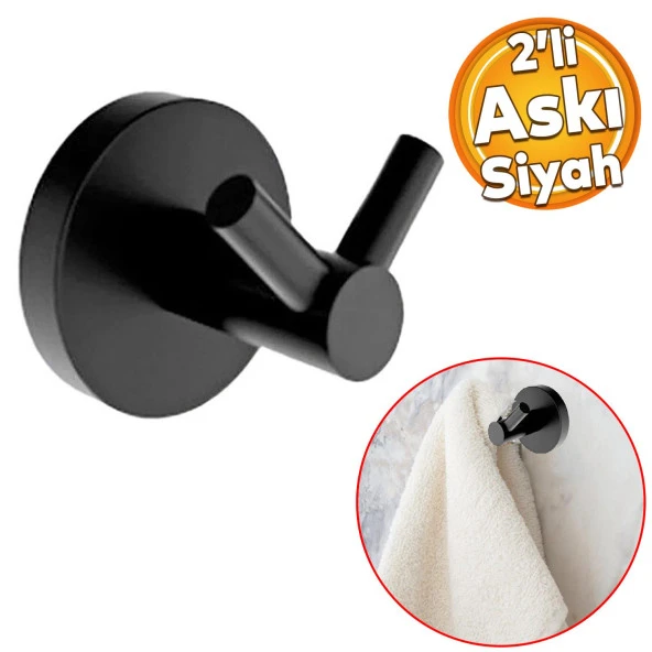 Siyah Renk Metal Sağlam Banyo Lavabo 2li Askılık Aparat Bornoz Havlu Asma Askı Vidalı
