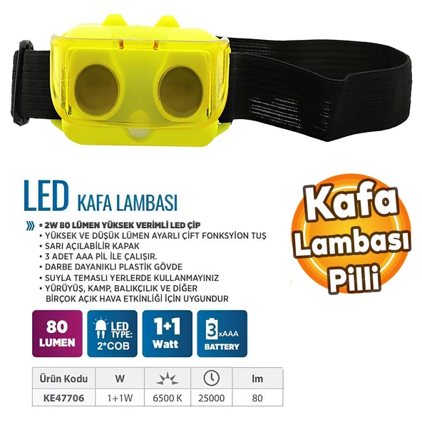 Pilli Ledli 3 Fonksiyonlu Kafa Lambası Kamp Kafa Feneri Kapaklı 1+1 W