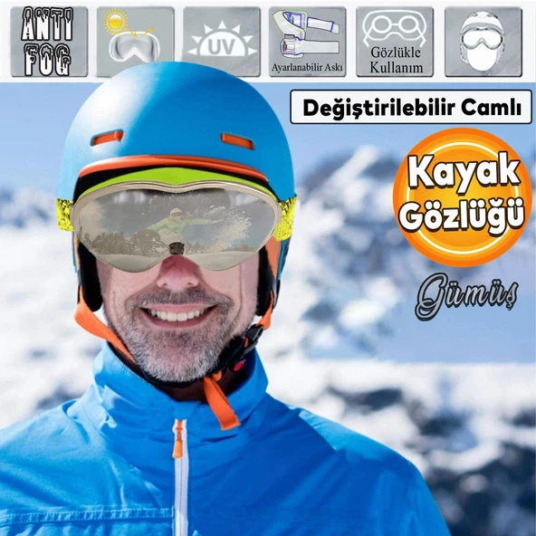 Bellasimo Kayak Gözlüğü Değiştirebilir Camlı Antifog Güneş Kar Gözlük Gümüş Snowboard Glasses Gözlük