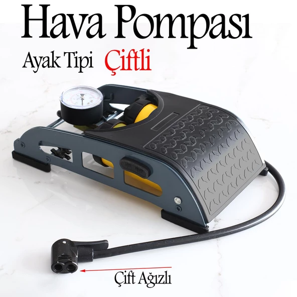 Ayak Tipi Hava Pompası Göstergeli Kilitli Çiftli Hava Depolu Teker Araç Bisiklet Top Pompası