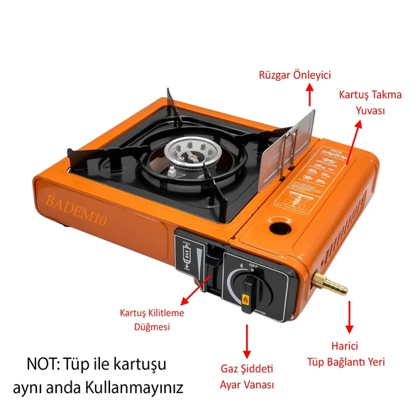Portatif Taşınabilir Kamp Ocağı Tek Gözlü (10 Adet) Gaz Kartuşlu Tüp Uyumlu Bağlantı Piknik Ocak
