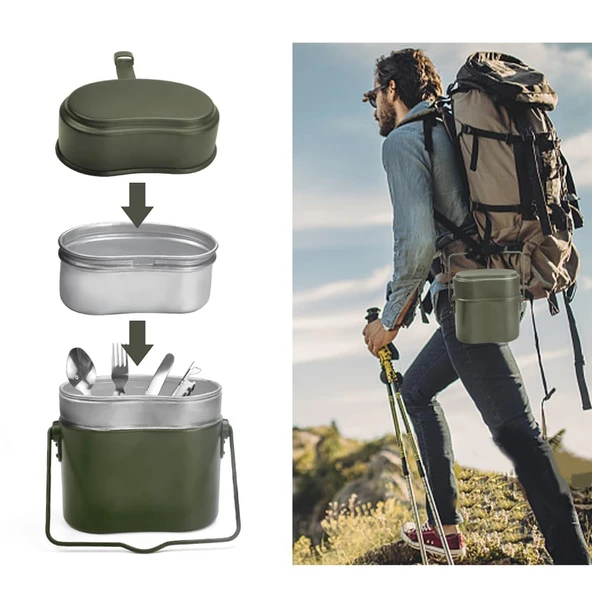 Alüminyum Kamp Yemek Pişirme Sefer Tası Seti Dış Mekan Alüminyum Tencere Seti Saplı Pişirme Set