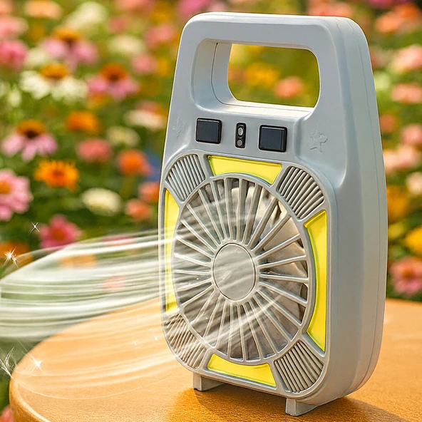 Şarjlı Fanlı LED Kamp Lambası 4 Kademe Aydınlatma | Suya Dayanıklı Type-C Girişli Taşınabilir Işık