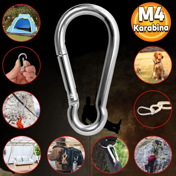Karabina 4 MM Yaylı Kanca Paslanmaz Çelik Kilit Tırmanma Dağcılık Kamp Ekipmanları Salıncak Hamak Anahtar Askı Kilidi