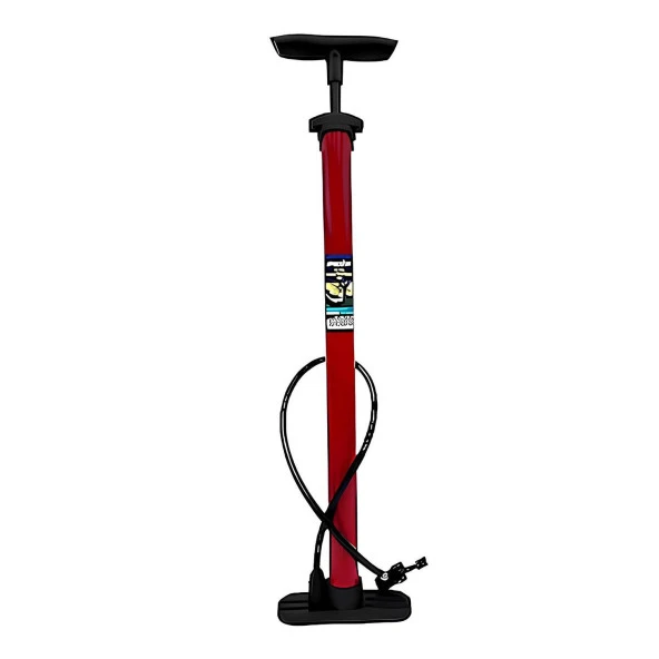 El Tipi Klasik Plastik Bisiklet Hava Pompası Ayak Tutamaklı Pompa Kırmızı