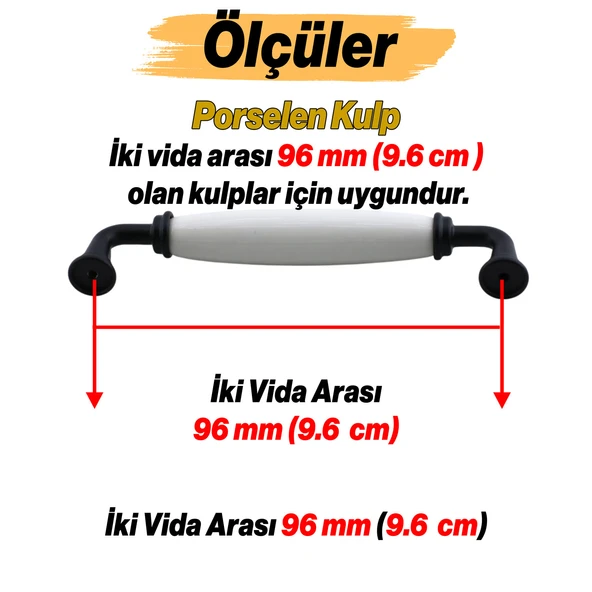 Kapıdağ Porselen Siyah Kulp 96 mm Mobilya Çekmece Mutfak Dolabı Dolap Kapak Kulplar Kulb Kulpu