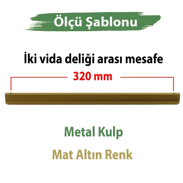 Dombay (Mat Altın) Metal Kulp 320 mm 32 cm Mobilya Çekmece Dolap Kulpları Mutfak Dolabı Kulbu Kulpu