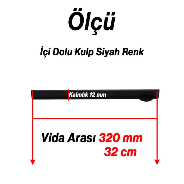 Efes Siyah Metal Kulp 320 mm 32 cm Modern Mobilya Çekmece Dolap Kapak Kulpları Mutfak Dolabı Kulp