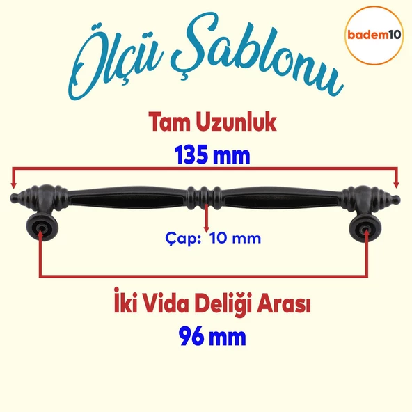 10 Adet Maça Siyah Metal Kulp 96 mm-9.6 cm Mobilya Çekmece Mutfak Dolabı Dolap Kulpları Kulbu Kulpu