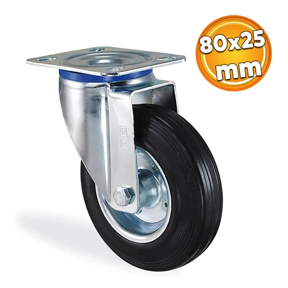 Kama Oynak Tablalı 80 x 25 mm Teker Siyah Burçlu Ağır Yük Tekeri Frensiz 1 Adet