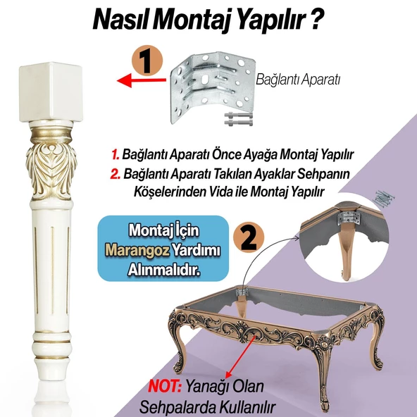 Plastik Krem Altın 4 Adet Valenta Sehpa Ayağı 47 cm Mobilya Zigon Çay Orta Sehpası Ayak Ayakları