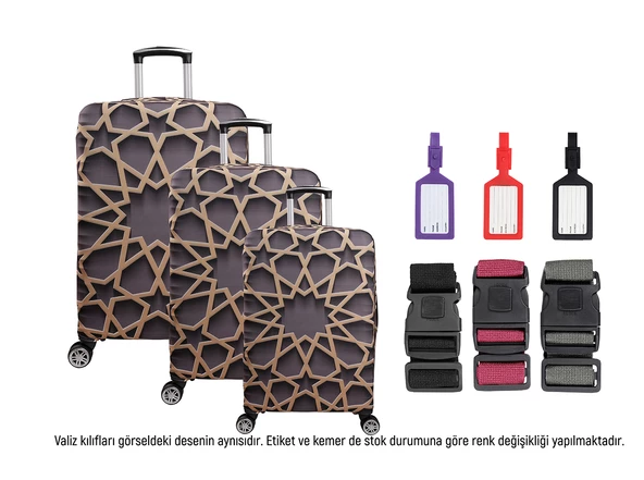 Bagacar Yıldız 3lü Set Valiz Kılıfı, 3 lü Valiz Kemeri, 3lü Valiz Etiketi