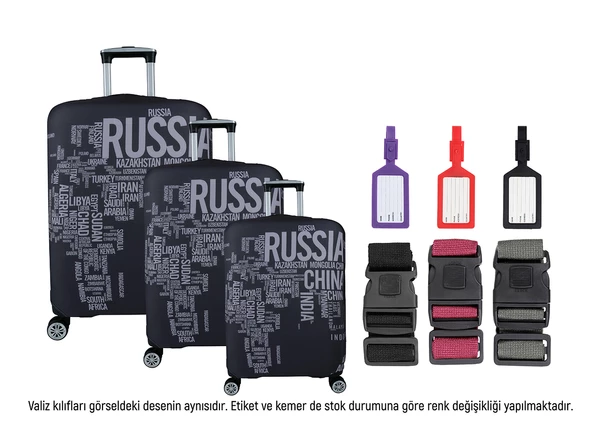 Bagacar Ülkeler 3lü Set Valiz Kılıfı, 3 lü Valiz Kemeri, 3lü Valiz Etiketi