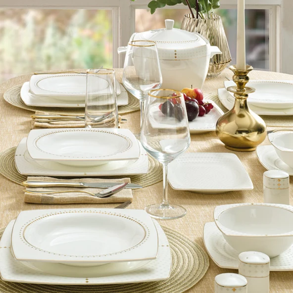 Schafer Dina 56 Parça 12 Kişilik Yemek Takımı Altın