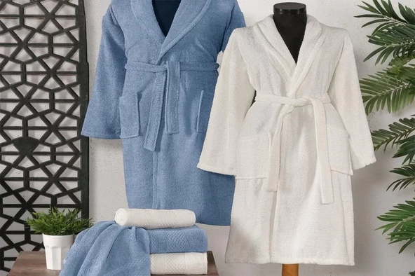 Schafer Home Arya Bornoz Havlu Seti 6 Parça İndigo Beyaz