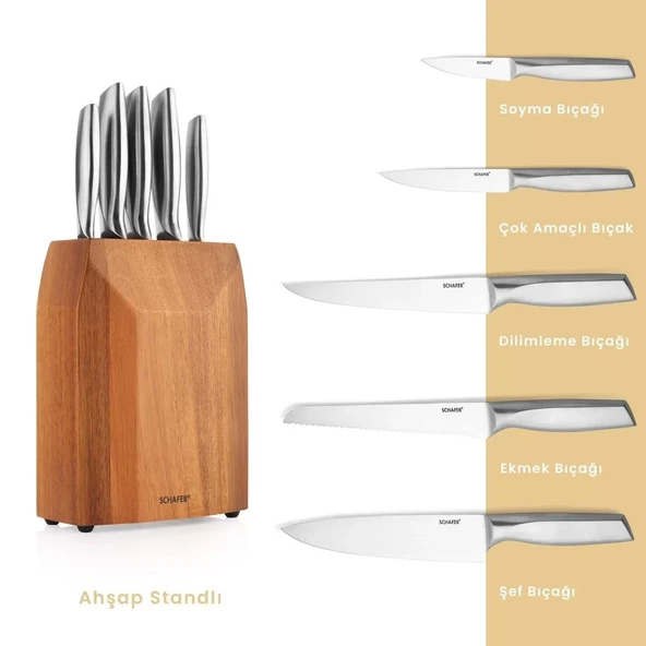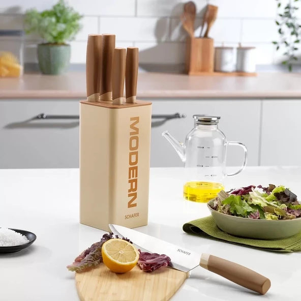 Schafer Forge Bloklu Bıçak Seti 6 Parça-Krem