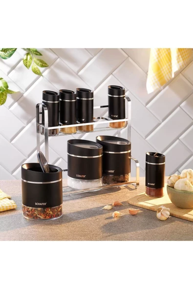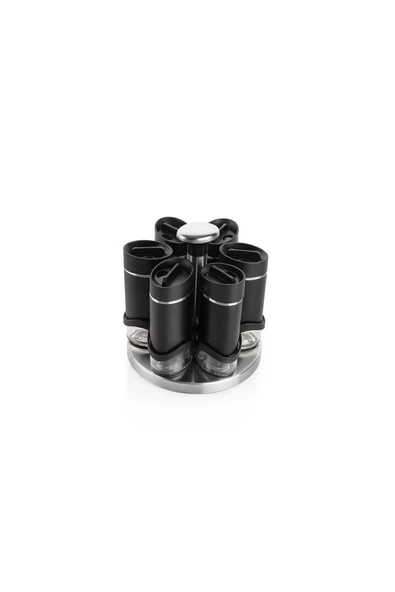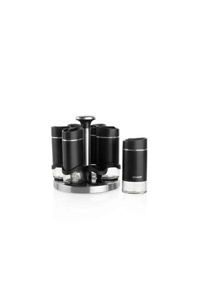 Schafer Silver Touch Döner Standlı Baharat Takımı 7 Parça Siyah