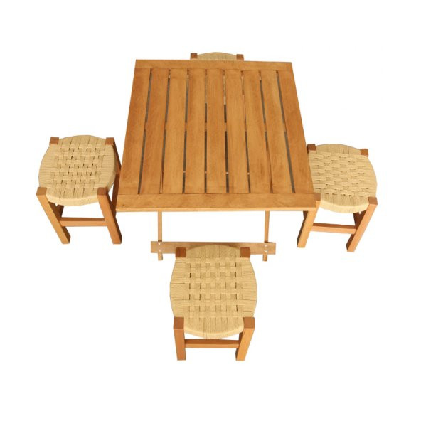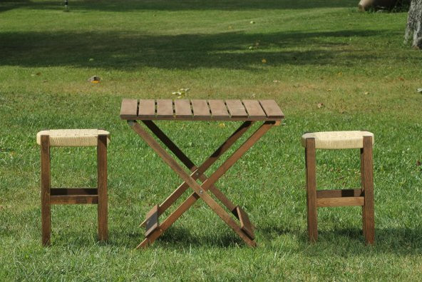 Ahşap Hasır Örgülü Tabure ve Masa Seti, Piknik Seti, Balkon Katlanır Masa ve Tabure Seti