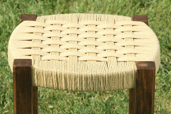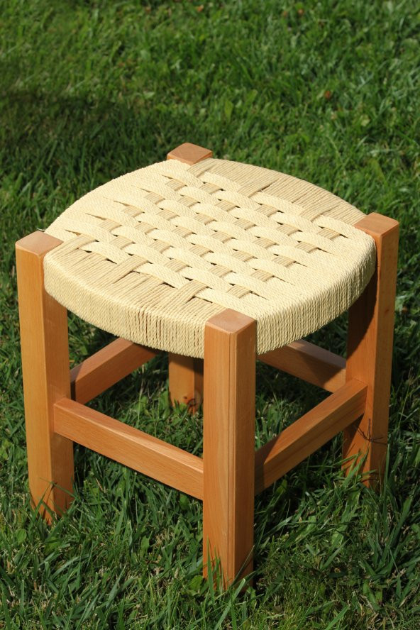 Ahşap Hasır Örgülü Tabure Doğal Renk