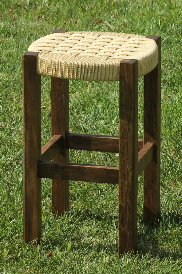 Ceviz Rengi Ahşap Hasır Örgülü Tabure