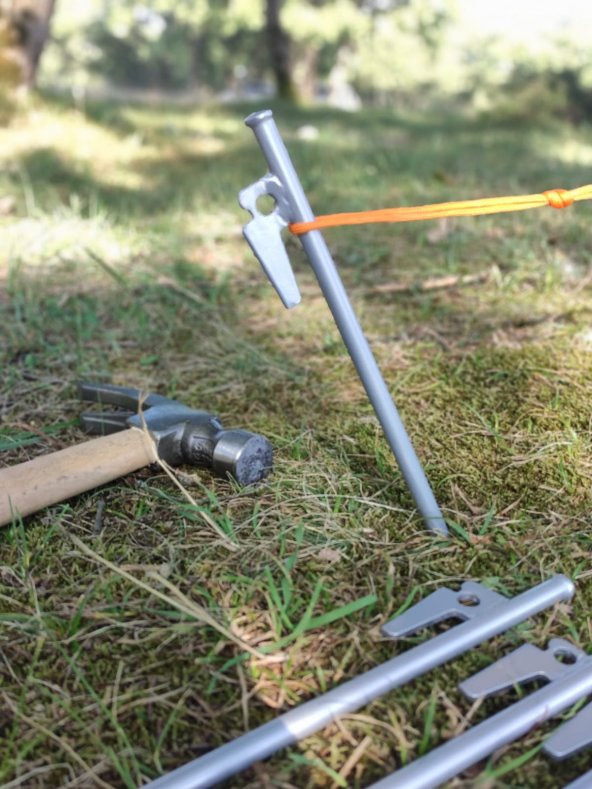 Çadır Kazığı 20 cm 12 adet, Kamp Bahçe Zemin Kazığı, Demir Kancalı Kazık, Çadır Kazık Seti