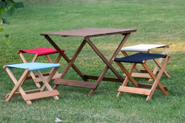Ceviz Rengi Katlanır Masa ve Tabure Seti, Balıkçı Taburesi, Kamp Masa Sandalye Seti, Piknik Seti