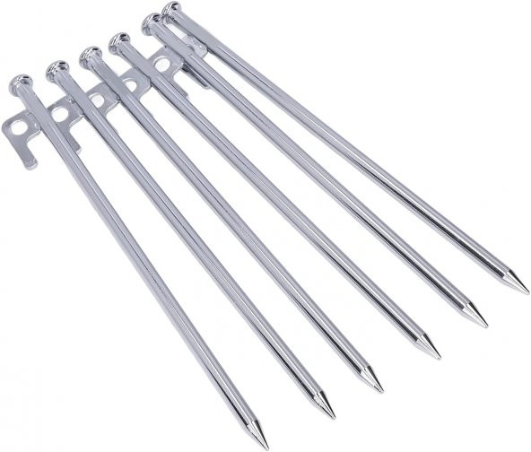 Çadır Kazığı 20 cm 6 Adet Gri, Kamp Bahçe Zemin Kazığı, Demir Kancalı Kazık, Çadır Kazık Seti