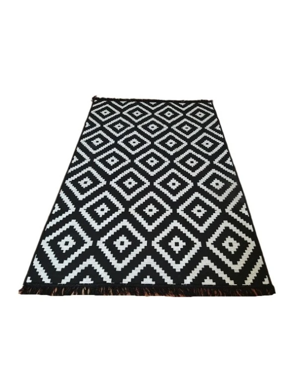 Algelsineve Antik Kilim Paspas - Siyah Beyaz Piramit Desen, 60x90cm