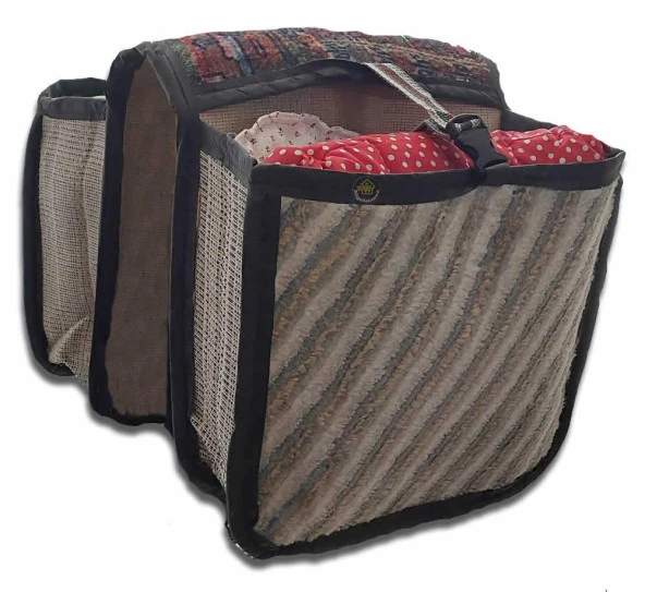 Algelsineve Büyük Boy 2 Gözlü Antik Kilimden Motosiklet Çanta Heybe, mavi