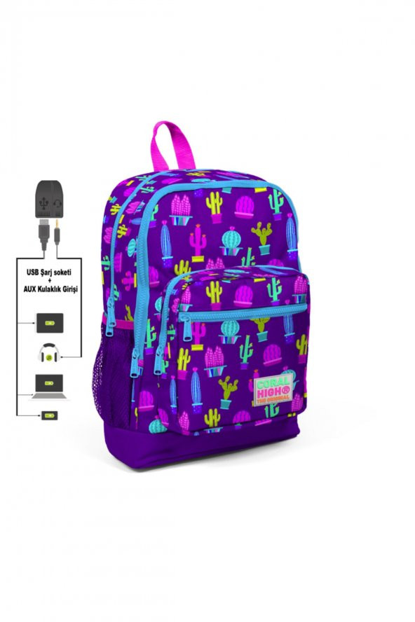 Unisex Çocuk Desenli Dört Bölmeli Usb Şarjlı Kulaklık Çıkışlı Okul Sırt Çantası
