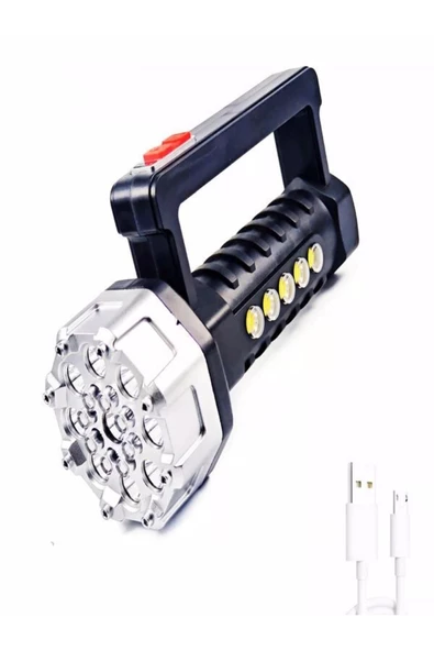 ULTRATEKNO Şarjlı 17 Ledli Ultra Güçlü Profesyonel El Feneri Şarj Göstergeli Su Geçirmez Cob Led Fener Işıldak