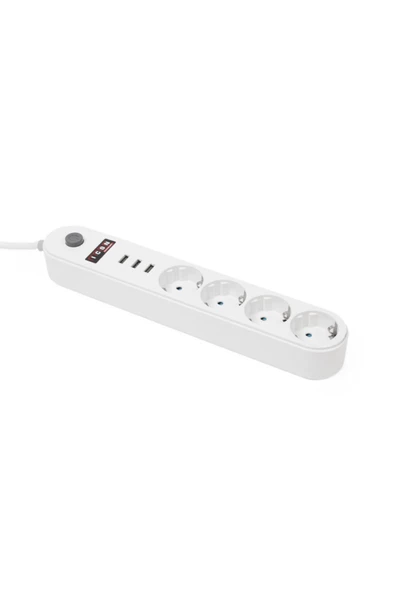 ULTRATEKNO 4’lü Ekonomik Paket Anahtarlı Akım Korumalı Led Işıklı Grup Priz 4 Priz + 3 USB Giriş