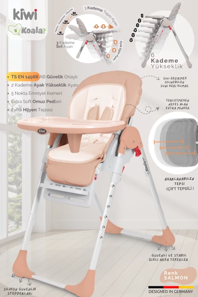 Kiwi Koala All İn One Katlanır Tekerlekli Mama Sandalyesi Somon