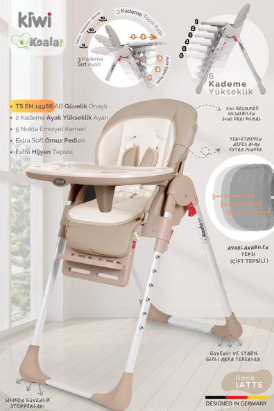 Kiwi Koala All in One Katlanır Tekerlekli Mama Sandalyesi Latte
