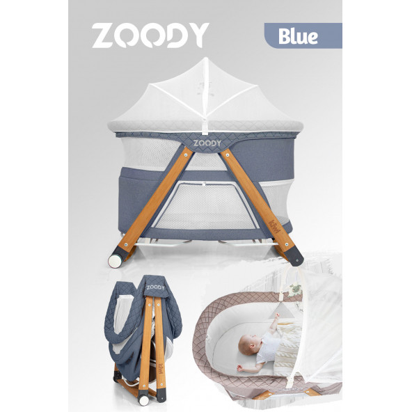 Kiwi Zoody 3 in 1 Bebek Beşiği, Oyun Parkı ve Park Yatak Mavi