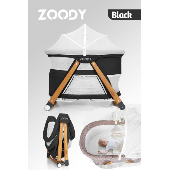 Kiwi Zoody 3 in 1 Bebek Beşiği, Oyun Parkı ve Park Yatak Siyah