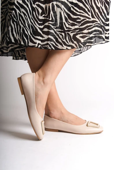 KAYLEE Bağcıksız Ortopedik Rahat Taban Toka Detaylı Kadın Babet Ayakkabı CKT - Krem