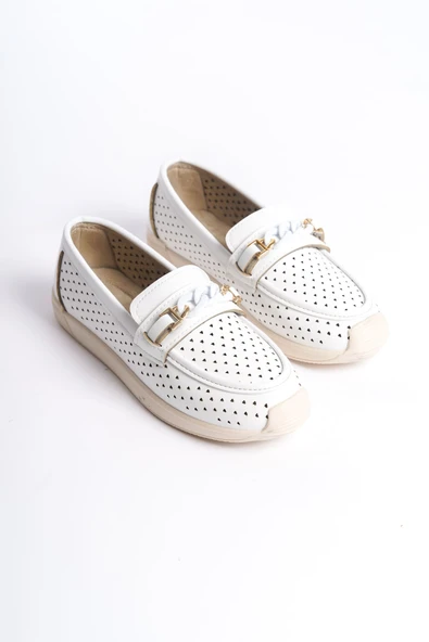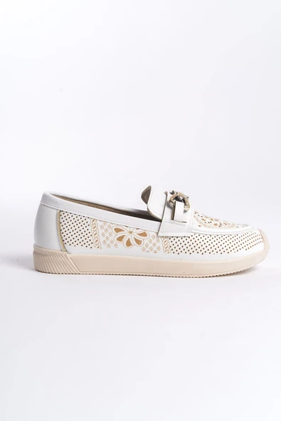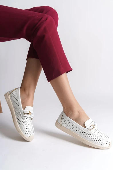 KAYLEE Bağcıksız Ortopedik Rahat Taban Toka Detaylı Kadın Babet Ayakkabı CKT - Beyaz