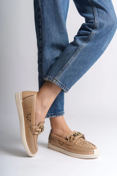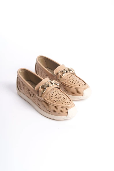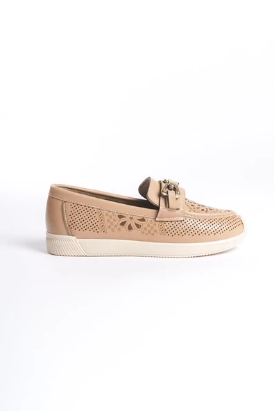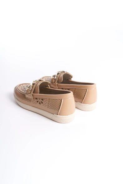 LAYLA Bağcıksız Ortopedik Rahat Taban Kalp Desenli Kadın Babet Ayakkabı CKT - Ten