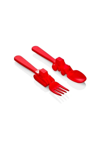 Figürlü Mama Çatal Kaşık Seti - Kırmızı
