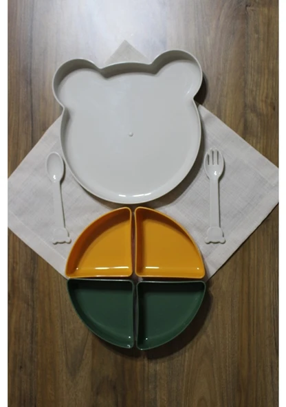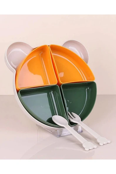 Tabldot Mama Tabağı Çıkarılabilir Kaseli -Tepsili 4 Bölmeli Çatal Kaşıklı Ayıcık Beslenme Kabı