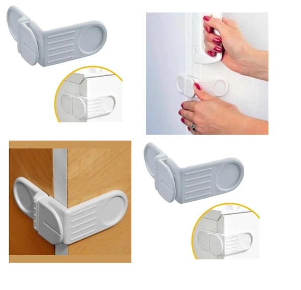 Bebek Çocuk Güvenlik Çekmece ve Dolap İçin Yapışkanlı Vidasız Köşe Kapak Kilidi x 2 Adet