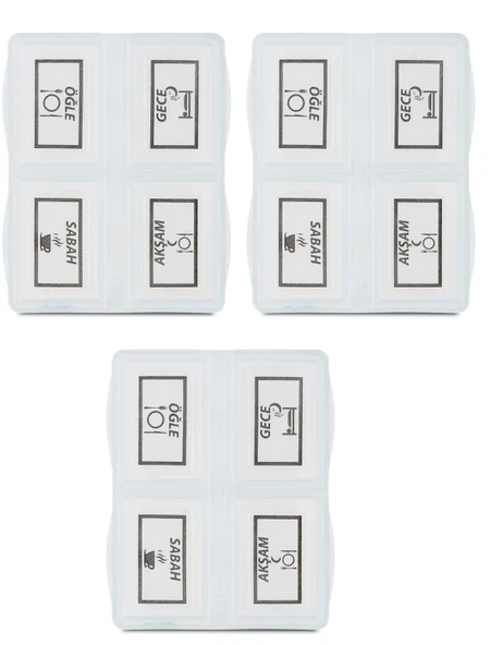 3 Adet - 4 Bölmeli Günlük İlaç Saklama Kutusu