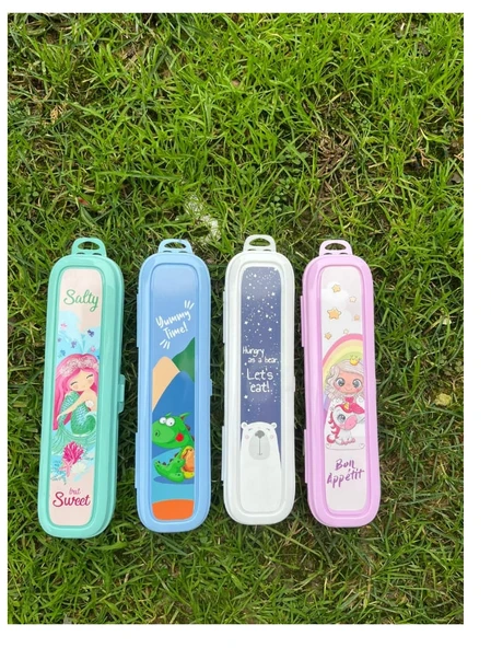 Meyve Suyu Bölmeli - Tabaklı Beslenme Kabı Diyet Kabı -Çatal Bıçak Kaşık Dahildir