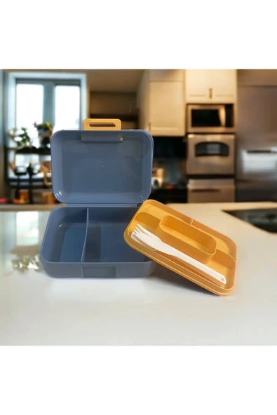 Luna 3 Bölmeli Çatal Bıçaklı Beslenme Kabı - Diyet Kabı - Çatal Kaşıklı