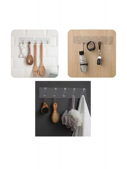 Ultra Güçlü Yapışkanlı 5li Şeffaf Askı