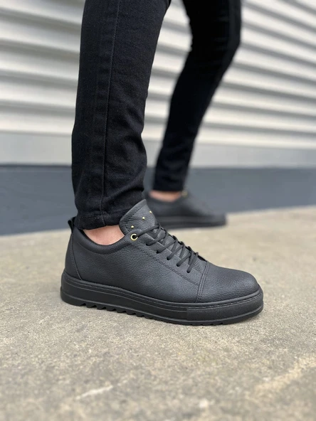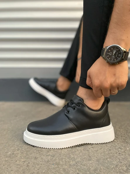 JY152 Cool Bağcıklı Cilt Erkek Günlük Spor Klasik Ayakkabı CBT - Siyah